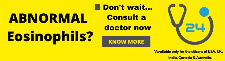 If you want your blood test report to be interpreted by Eosinophils specialist, you can upload your report. Our Eosinophils expert will provide you with the most accurate interpretation of your blood test results and treatment within 12 hours.Upload blood test report now